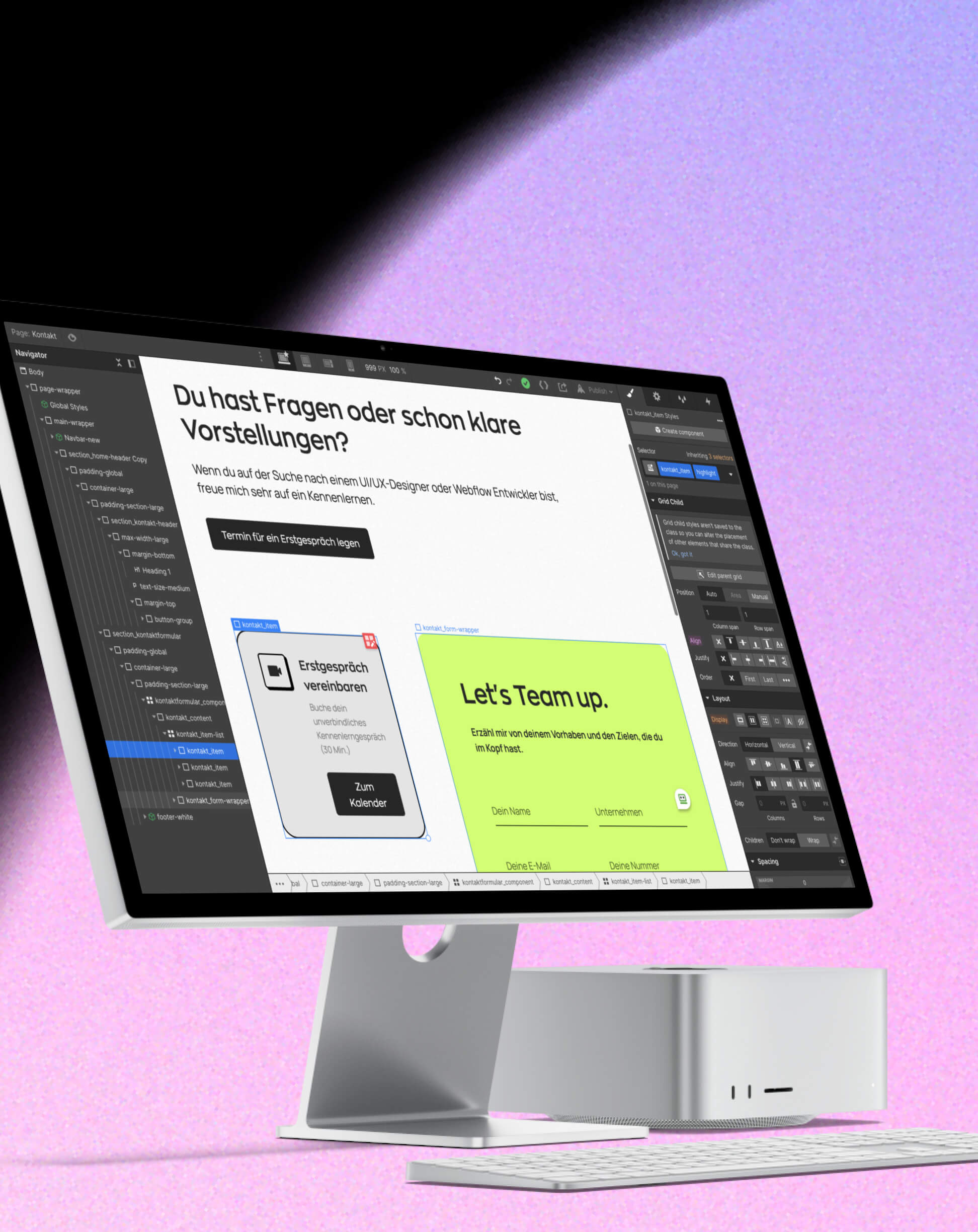 Verwandle deine kreativen Visionen in fesselnde Websites mit einer nahtlosen Entwicklung in Webflow. Hierbei greife ich auf die Client-First-Methode zurück.